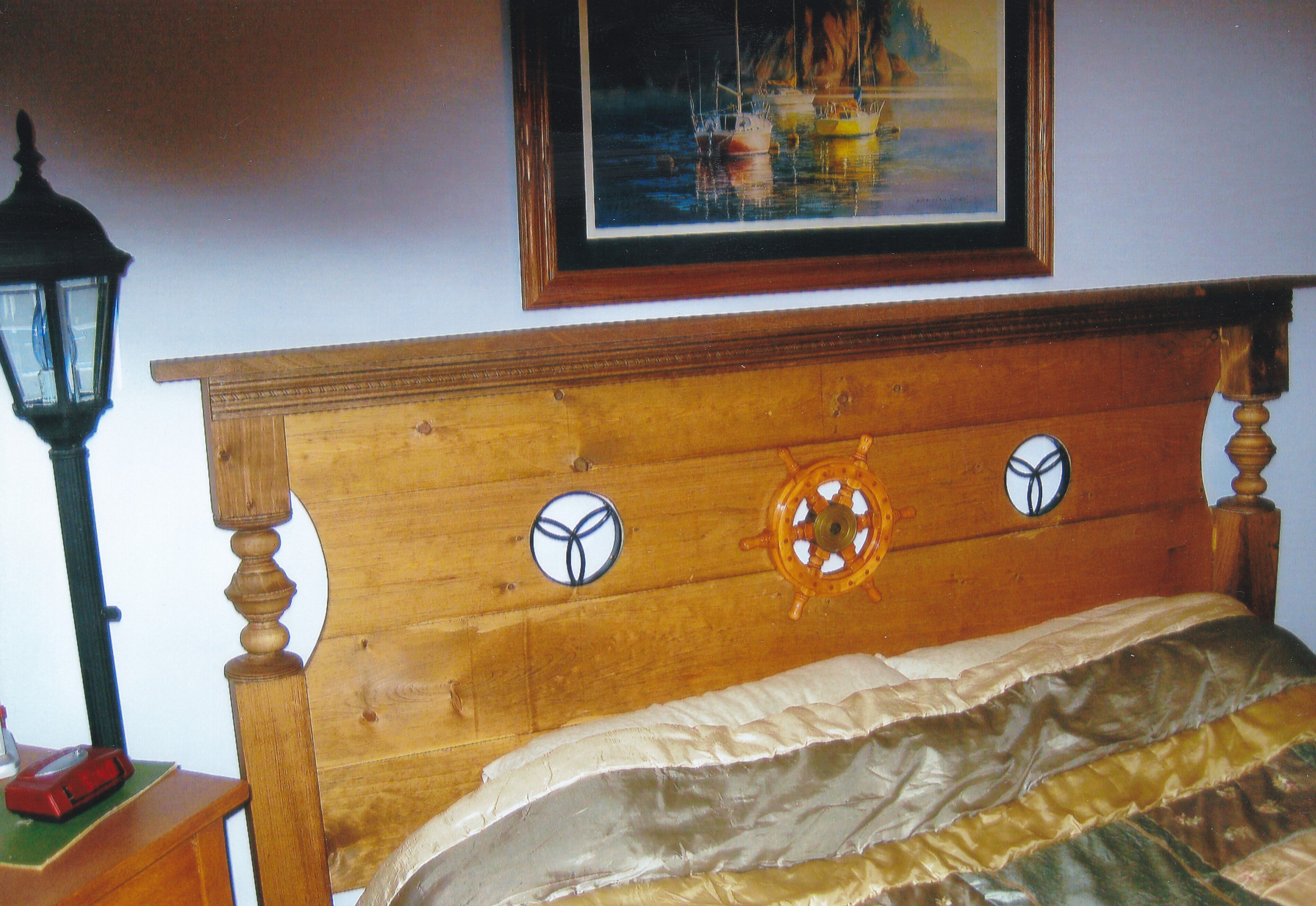 Hawk Designs fabricated a custom bed headboard for a client in Oshawa, Ontario featuring a nautical theme with integrated Celtic love knot steelwork. The project combined metal fabrication with wood elements to achieve a balanced, functional design.